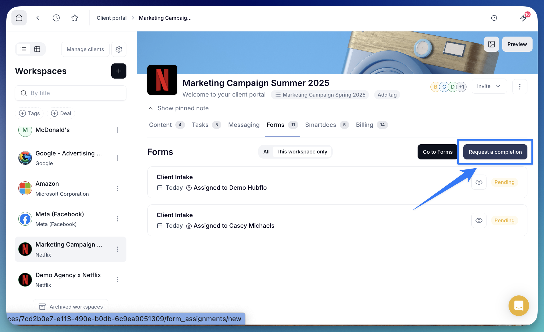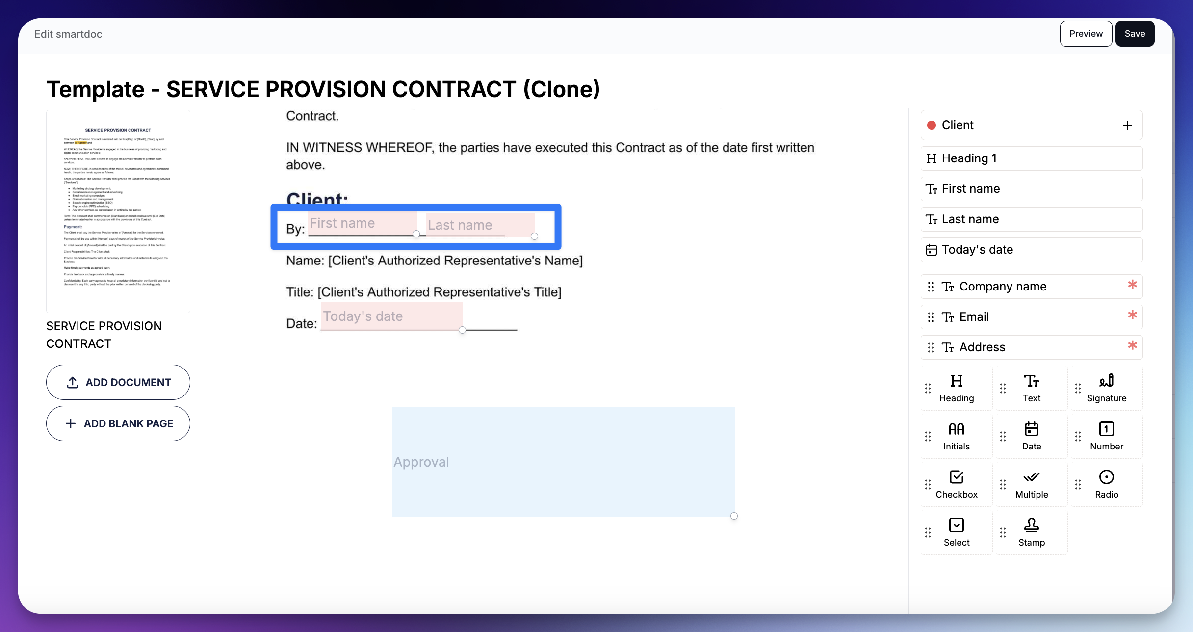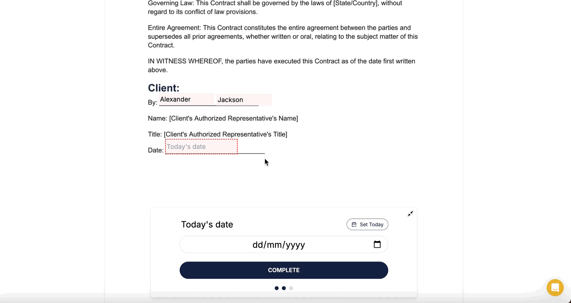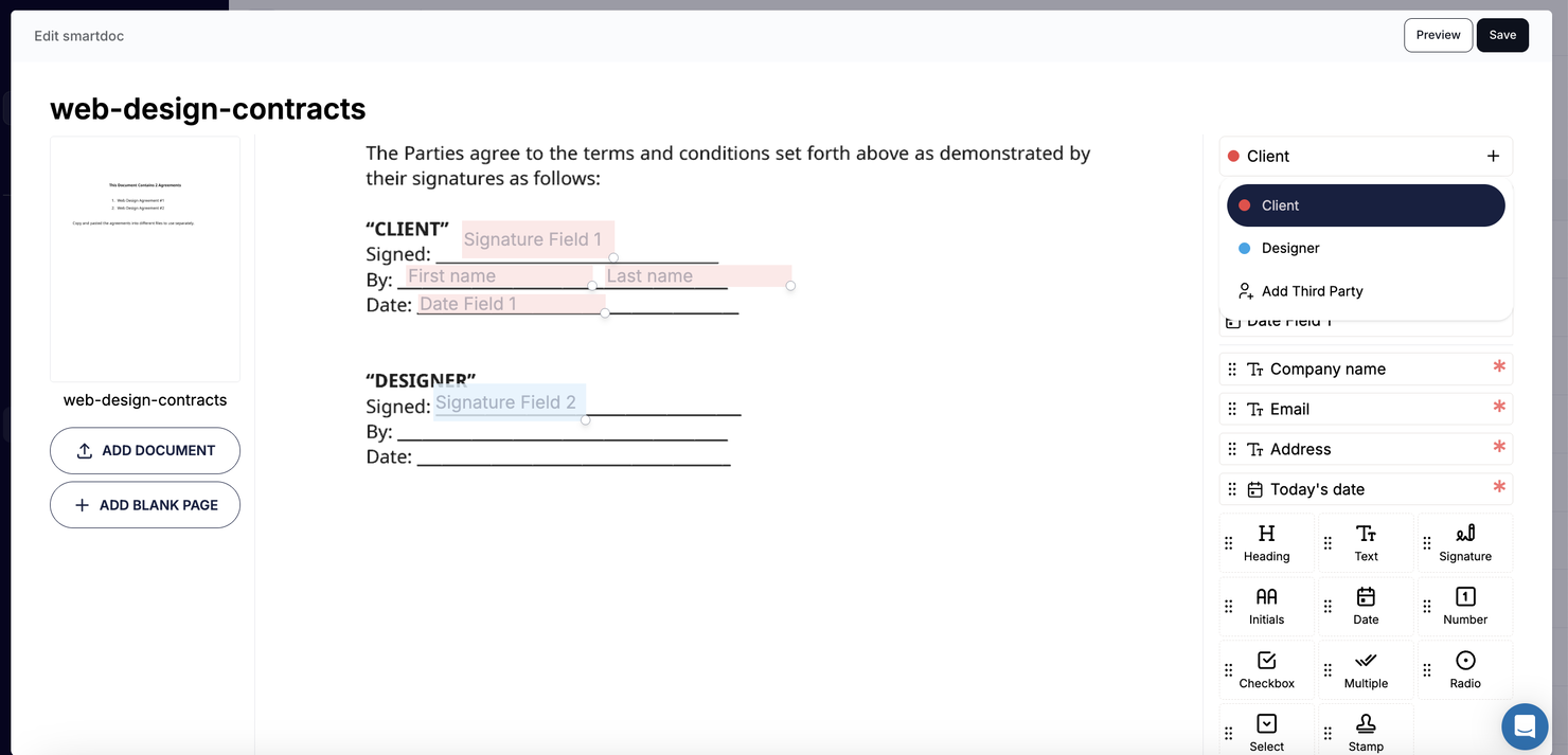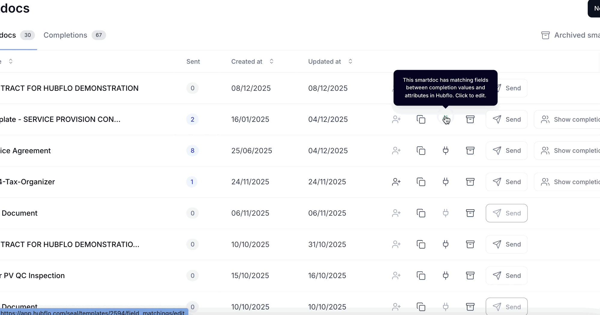 - When sending the doc, if those fields are already filled in Hubflo, theyโll show up pre-filled for your client โ and they can still edit them if needed.